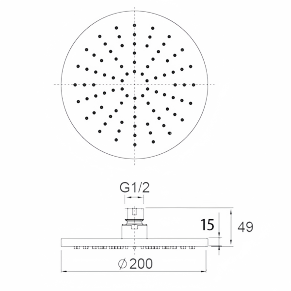 Size shower head: 8 inch (200mm)