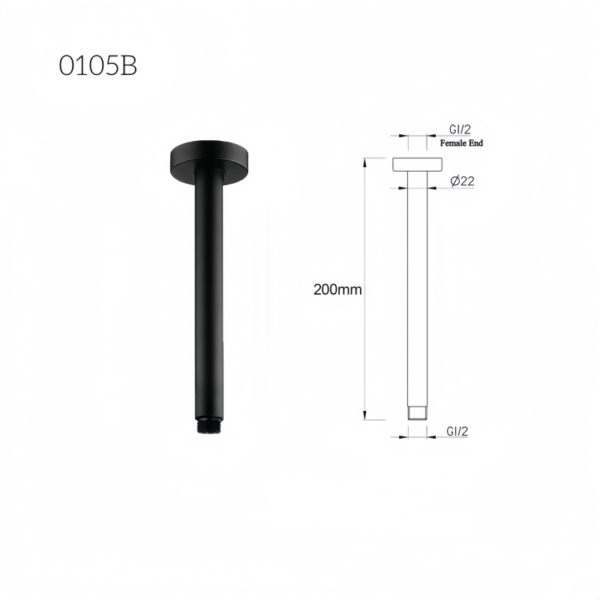 Main Product: 1 x Round Shower Head (Default 8″ 200mm ABS shower), 1 x ceiling mounted shower arm (Default 200mm)