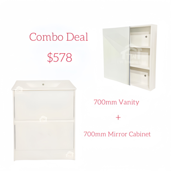 Combo Deal – White Combo – 700mm Free Standing Vanity + 700mm Mirror Cabinet