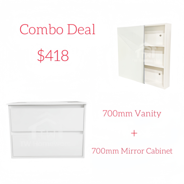 Combo Deal - White Combo - 700mm Free Standing Vanity + 600mm Mirror Cabinet