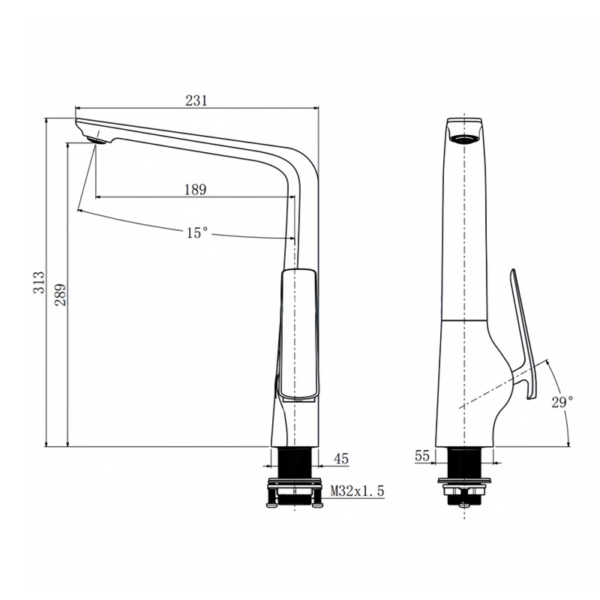 Kitchen Mixer – 360° Swivel – NZHKF1033 – Chrome/Black/Brushed Nickel