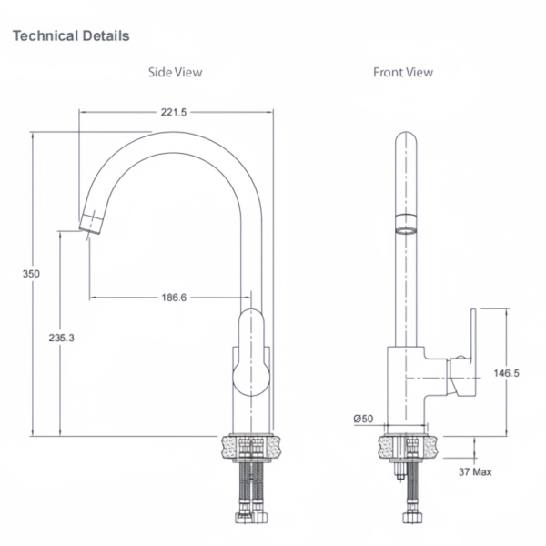 Kitchen Mixer – Englefield 97532A-CP – Gooseneck Round 360° Swivel