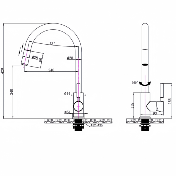 Kitchen Mixer – PullOut Round 360° Swivel – NZHKF1016 – Chrome/Matt Black