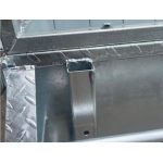 The Trailer has been made from 2 sheets of 2.5 mm Checker plate that has been seam welded and folded to make the floor and 300 mm x 2.5 mm sides – This means no joins where the side meets the floor to rust out