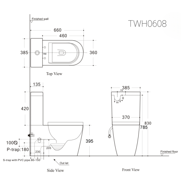 Toilet Suite – Back to Wall – Rimless – Dual Flushing – TWH0608