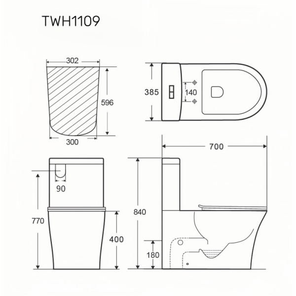 Toilet Suite – Back to Wall – Rimless – Tornado Flushing – TWH1109